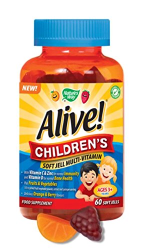 (4 Pack) - Nature's Way - Alive! - Children's Soft Jells |60 Chewables | 4 PACK BUNDLE. Complete multi-vitamins specially balanced for children aged 3+. DELICIOUS ORANGE AND BERRY NATURAL FRUIT FLAVOURS. SUITABLE FOR VEGETARIANS