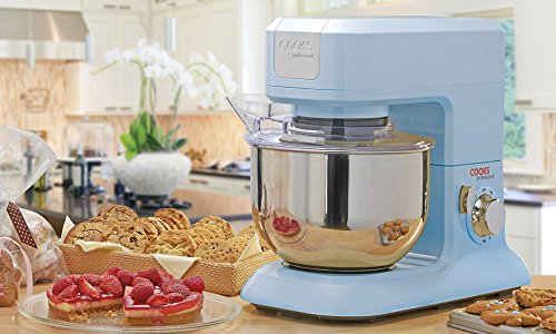 800W Electric Food Stand Mixer with 4.5 Litre Mixing Bowl Plus 3 Attachments by Cooks Professional (Blue) has the following specifications Create a range of tasty creations from the comfort of your own home with this stylish stand mixer from Cooks Professional. Ideal for preparing fluffy meringues, bread dough, cake mix, and more. The powerful 800W motor takes the hard work and stress out of baking and the large 4.5-litre stainless steel bowl ensures there is plenty of room whether you are making a large loaf of bread or some little cupcakes.