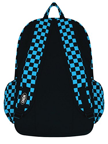 CHECKER BLACK & BLUE BACKPACK RUCKSACK SKATEBOARD BAG with LAPTOP PROTECTION | School College Travel Work | Check Goth Rock Emo Skate | CHOK has the following specifications Robust and Durable Black & Blue Checker backpack with laptop and water protection. Lightweight, Practical and Strong. Spacious backpack that can accommodate a laptop (upto 15 inch) and A4 arch lever files. Practical backpack with 2 front zipped compartments and 2 side pockets. Extra padding in shoulder straps and back for added comfort and support. This bag will accommodate an A4 Lever arch file plus more. Dimensions (Approx) H=42cm W=29cm D=13cm Great for Skateboaders. 100% Official CHOK Branded UK Product PROMOTIONAL LAUNCH PRICE Limited Time Only