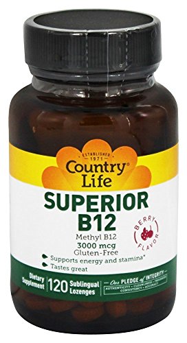 Country Life - Superior B-12 Sublingual Berry Flavor 3000 mcg. - 120 Lozenges. .