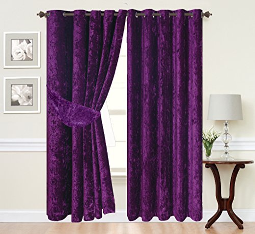 Curtains Eyelet Ring Top Crushed Velvet fully Lined Designer Curtains NEW (66 X 90, Purple) has the following specifications CUSHION MANIA INTRODUCES NEW RANGE LUXURIOUS CRUSHED VELVET NEW CRUSHED VELVET CURTAINS ARE LINED WITH WHITE LINING 70 GSM At unbeatable price HAVE A LOOK AT DROP DOWN LIST CURTAINS ARE TOP STITCHED ON BOTH VERTICAL ENDS TO GIVE A PROFESSIONAL FINISH AT UNBEATABLE PRICES SIMILAR CURTAINS ARE SOLD OVER £100 ON INTERNET HURRY !!!!!!! SPECIAL OFFER PAIR OF CRUSHED VELVET FULLY LINED EYELET CURTAINS AVAILABLE IN 8 STRIKING COLOURS AND 6 MOST POPULAR SIZES SIZE SHOWN IS OF EACH CURTAIN WE HAVE ALSO LISTED MATCHING TIE BACKS IN SAME MATERIAL. SIMPLY SELECT THE QUANTITY YOU REQUIRE FROM DROP DOWN LIST ABOVE MODERN AND STYLISH CURTAINS ARE SOLD AS A PAIR TIE BACKS ARE SOLD AS PAIR QUALITY PRODUCT TRANSFORM YOUR ROOM INTO A MODERN CONTEMPORARY HAVEN various sizes available SIZE SHOWN IS FOR EACH CURTAIN PLEASE SELECT FROM DROP DOWN ABOVE. sizes tolerance +/- 5% due to nature of fabric Silver eyelets (4 cm wide) Fabric is 100% polyester SUITABLE FOR MACHINE WASHING IRONING IS ADVISED BEFORE HANGING TO GIVE THE FINAL LOOK TIE BACKS NOT INCLUDED SOLD SEPARATELY THANKS FOR LOOKING
