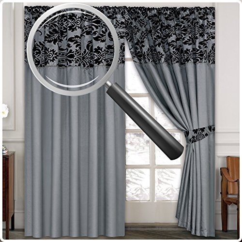 Half Flock Damask Pencil Pleat Ready Made Curtains (90''x90''(228x228cm), Grey+black) has the following specifications Enhance your bedroom / Living room with these beautiful luxurious quality Damask pencil pleat Curtains. They Are Well Designed, Superior Quality, Amazing Colours, Great Finishing. Just Imagine Them In Your Lounge Or Bedroom. Material: 100% Polyester with Micro Fibre flocking _ Available in 2 size: 90"x90" & 66"x72" Fully Lined Curtains including Tie backs & can be used with Hooks or Pole