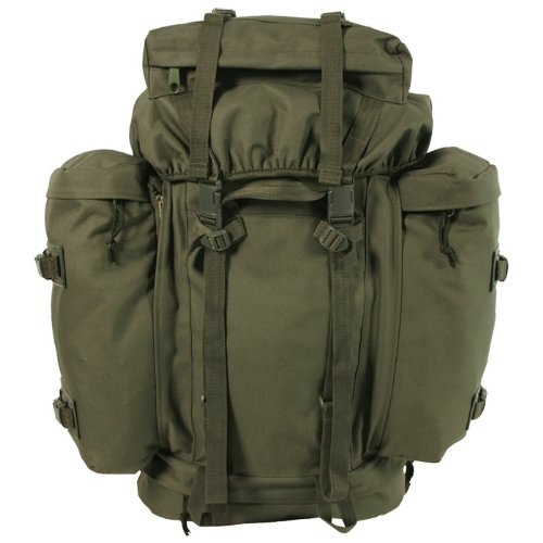 Military Hiking Camping Mountain Bergen German Army Patrol Pack 80L Olive Green has the following specifications This sturdy top loading bergen features 5 separate compartments including 2 detachable side pockets, 1 main flap covered compartment and a large zip fastening pocket inside the top flap, secured onto the pack with 2 quick release buckles, that can be used to store documents, accessories and other quick access essentials. The main compartment with a capacity of 80 liters has an integrated compression bag closed with a drawstring at both top and bottom. It also has an additional capacity in an integrated bottom compartment with its own zipper access. This section can be used as a 'false-bottom' compartment itself for the carrying of items required for easy access. It is worth adding that 2 detachable side pockets open with their own zippers and when detached, they can be zipped into each other to make an emergency pack or a daypack. What is more the bergen gives a possibility to attached additional equipment through 2 external adjustable quick release attachment points on the top flap, 2 external buckle fastening adjustable attachment points at rear of the top flap and a number of straps and attachment points at base and front. The bergen has a specially shaped contoured and fully adjustable VARIO Back System. Padded shoulder straps are adjustable on the top of the shoulder and under the arm, and are fitted with additional D-rings and a chest tensioner. An extra wide quick release hip belt is also shaped to the contour of the lower back and hips. All this provides an excellent comfort and weight spread for heavy loads. The internal U frame can be removed if required. The bergen offers a great amount of carrying space and is perfect for military as well as camping and hiking.