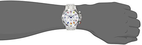 Nautica Men's N20503G NST Stainless Steel Watch has the following specifications The Nautica Men's NST Chronograph Bracelet Watch #N20503G features classic chronograph styling with a nautical theme. Surrounding this watch's attractive silver dial is a rotating stainless steel bezel with engraved minute markers. Protected by a mineral crystal, the dial features 12 colorful nautical flags that serve as hour markers, and three subdials at the three, six, and nine o'clock positions. Other features include a date window between the four and five o'clock positions, and a stainless steel bracelet that closes with a fold-over clasp. This timepiece is water resistant to 330 feet (100 meters) and relies on Japanese quartz movement.