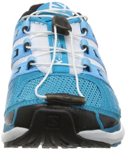 Salomon Women's X-Scream Trail Running,Boss Blue/Score Blue/White,8.5 M US has the following specifications The Salomon X-Scream Running Shoes feature a wide range of technologies designed to offer a dynamic and cushioned ride. SensiflexTM panels support natural foot expansion and forefoot flex, whilst still maintaining support. The SensifitTM system works to cradle the foot whilst in motion, offering you excellent support through the gait cycle. OS Tendon is normally found in natural running and hiking shoes and has been implemented to facilitate better rolling and a softer rebound. The EVA shaped sole increases the performance level of the footwear by adding thicker rubber to the footbed of the shoe for extra cushioning and comfort from the hard terrain. A QuicklaceTM system allow the wearer to tighten and loosen the shoe with a single tug, whilst an accompanying lace pocket provides easy storage for the lacing system. nAdditionally, the shoe's non-marking CONTAGRIP® outsole utilises a blend of specialised rubbers to deliver superb traction on an array of surfaces.