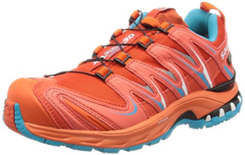 Salomon Women’s Bajo Xa Pro 3D GTX W Lava Trail Running Shoes, Orange (Orange), 5.5 UK has the following specifications Salomon XA Pro 3D GTX Women's Trail Running Shoes From the first step, to the thousandth, the XA Pro Series of shoes offers an incredible fit, improved durability and a grip that inspires confidence. The Salomon XA Pro 3D features a unique blend of lightweight, durability, stability and protection for running and fast hiking on rough terrain and technical trails. GORE-TEX EXTENDED COMFORT FOOTWEAR Gore-Tex's Extended Comfort Footwear is guaranteed to keep you dry and offers an extended range of comfort. Engineered to be used during high output activities, we use GORE-TEX Extended Comfort Footwear in our adventure racing and mountain running footwear where superior waterproof protection and enhanced breathability are essential. Breathable Mesh Upper .A precise and secure fit. A quick drying breathable mesh upper allows the foot to breathe, keeping it cool and dry as you take on the rough terrain. The Quick-lace System allows for easy on and easy off, whilst the Asymmetrical lacing system delivers a snug and personalized fit, particularly important when tackling rugged terrain. This is covered and wrapped with the SENSIFIT engineering. The Sensifit system works to cradle the foot providing a precise and secure fit that stabilizes the foot within its surroundings. A tongue cover provides protection against stones and debris from entering the shoe. There is also the added feature of a protective rubber toe cap to provide protection from knocks and abrasions on harder, aggressive terrain. Injected and Compressed Midsole .Superior underfoot cushioning. The shoe features an Ortholite insole, which combines a specific Ortholite foam and an EVA heel cup. Ortholite foam creates a cooler, drier, well cushioned environment under the foot. It will not break down or lose effectiveness over time. The EVA heel cups allows for a better heel support and added cushioning, as well as aiding with durability, to create an interior shoe that caters for all the needs and requi
