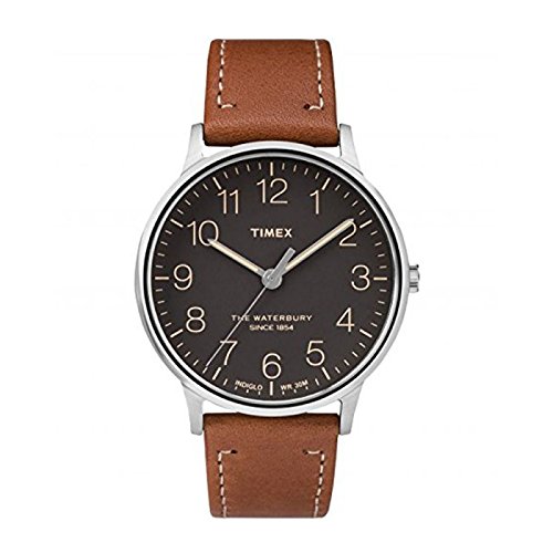Timex Mens Waterbury Classic Black Dial Brown Strap TW2P95800 has the following specifications Quartz mens wristwatch TW2P95800 with stainless steel case, with diameter 40 mm, brown dial and brown calfskin band.
